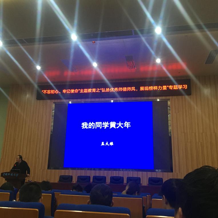 (通讯员:宋艺童)为贯彻和落实“不忘初心、牢记使命”主题教育的各项工作任务,强化“弘扬优秀师德师风,展现榜样力量”专题的学习效果,2019年11月21日下午,肉漫屋 邀请了黄大年同志的大学同班、同宿舍同学,我校材化学院孟大维教授到肉漫屋 做专题报告,介绍黄大年同志的先进事迹。本次学习活动由院党委书记吕军同志主持,学院全体师生党员参加。