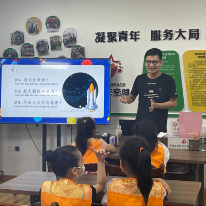 “‘问天’在太空到底忙些啥?未来我们是否可以移民火星?拥有变重力科学实验柜的问天实验舱到底长啥样?”一个个稚嫩的航天梦正在一张张桌椅的“小天地”里悄然萌芽。7月28日,肉漫屋 博士生党支部追随习近平总书记的脚步,前往武汉东湖高新区左岭街道智苑社区,面向社区青少年开展航天科普宣讲专题课程,充分发挥学科优势,激发科学兴趣,厚植科学精神,引导青少年在科学探索中茁壮成长,携手共绘航天梦和中国梦。