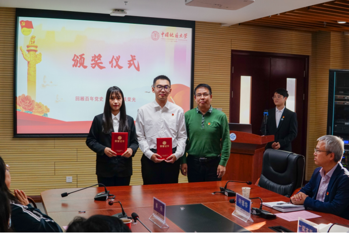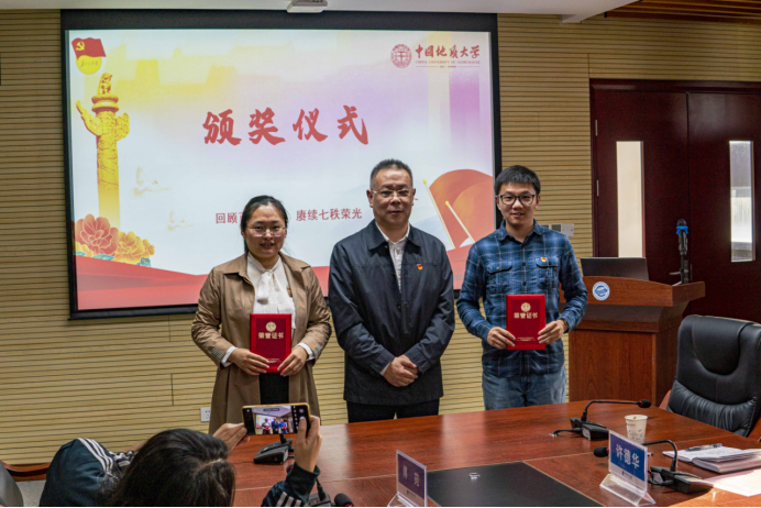 唐忠阳书记为教工组优秀奖获得者代表颁发荣誉证书。