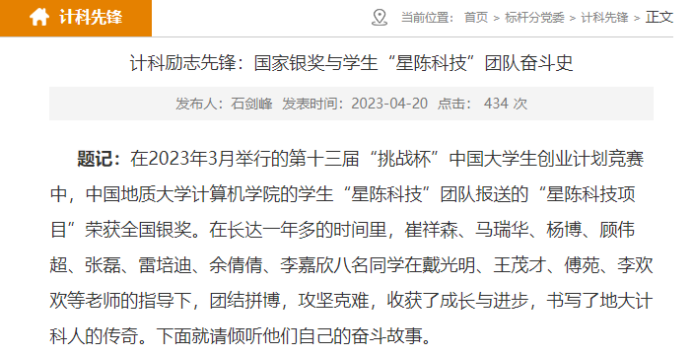 学院上下将主题教育与高质量党建、学院高质量发展紧密结合,开展支部主题联学、支部书记研学论坛、党建创新项目验收汇报会、企业专家进课堂、名师名校科普招生宣传、师生趣味运动会、科技创新典型事迹宣传等计科特色活动;“offer me”求职工作室开展各类就业求职指导和实习实践活动,CSer面试间助力同学们求职面试;推出的学院学生工作信息化工作平台为学生日常请销假、评优评先申请提供便利,为教师工作室开放日提供台账式管理的信息服务;反映专业思政视域下的计科三全育人体系的“计科十二时辰”系列推文,深受学生喜爱,官微、官网点击量近6000。生源数据智能分析与决策的党建创新项目将学院10年来的招生大数据进行分析,为今年的精准招生宣传提供有益参考。