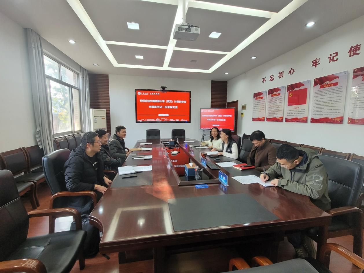 会上,赵晓霞书记首先代表学院表示热烈欢迎。曾峰副院长从学院概括、学科建设、科学研究、人才培养举措等方面介绍了学院发展情况。李国昌书记介绍了地大计算机学科的发展情况。