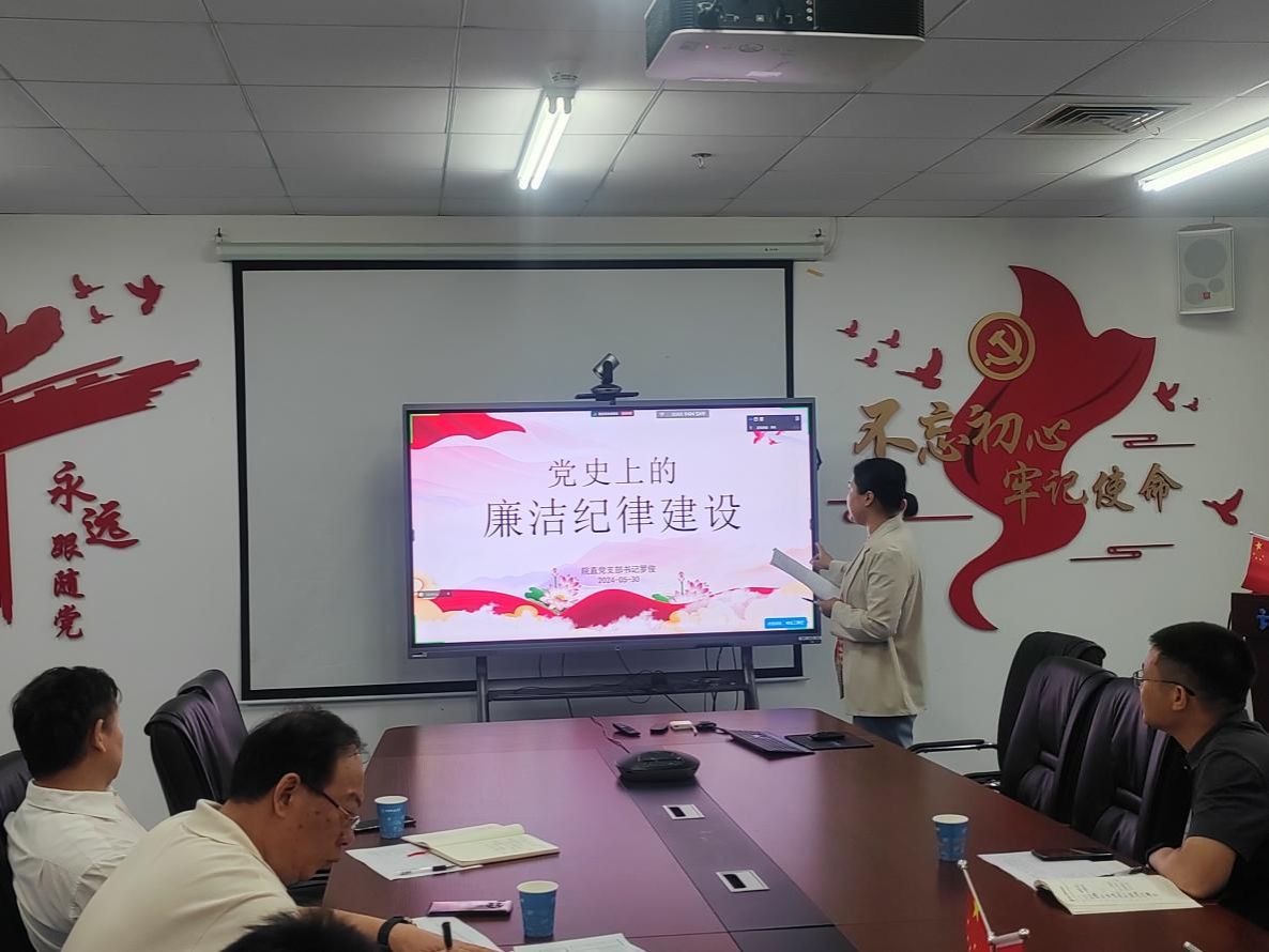 院直党支部书记罗俊以《党史上的廉洁纪律建设》为题,汇报了中国共产党勇于自我革命,坚持反腐倡廉的历程、经验及启示。