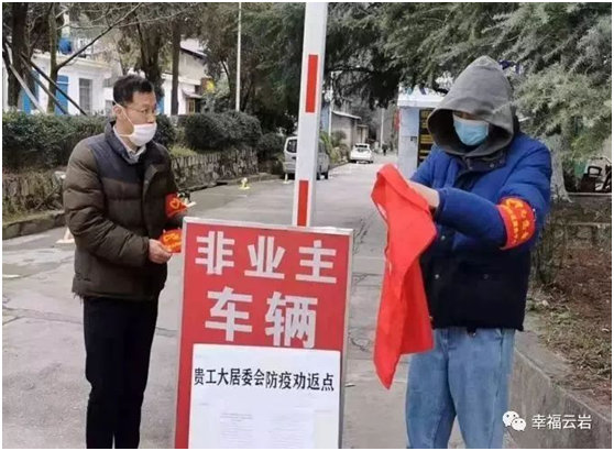 吴御风,2017级信息安全专业,坐标:贵州省贵阳市云岩区蔡家关社区。主要工作:(1)核实出入小区人员,及时劝返不属于本小区的人员;(2)对居民开展新型冠状病毒的科普。志愿服务期间,累计登记近180条出入人员信息,科普宣传覆盖当地群众近400人。