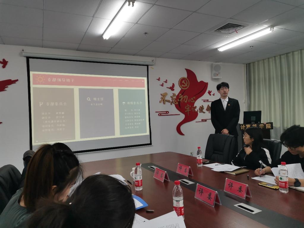 活动开始,主持人依次介绍了本次活动的评委。随后,参与答辩的10个团支部按顺序依次进行答辩。答辩过程中,各支部通过精彩的PPT展示和流畅的语言技巧,从支部概况、思想建设、文化艺术、科技成果、社会实践、学习成绩等几方面充分展示了团支部建设的丰硕成果,对上学期的团支部工作进行了总结与反思,并对本学期的团支部发展加以规划完善。