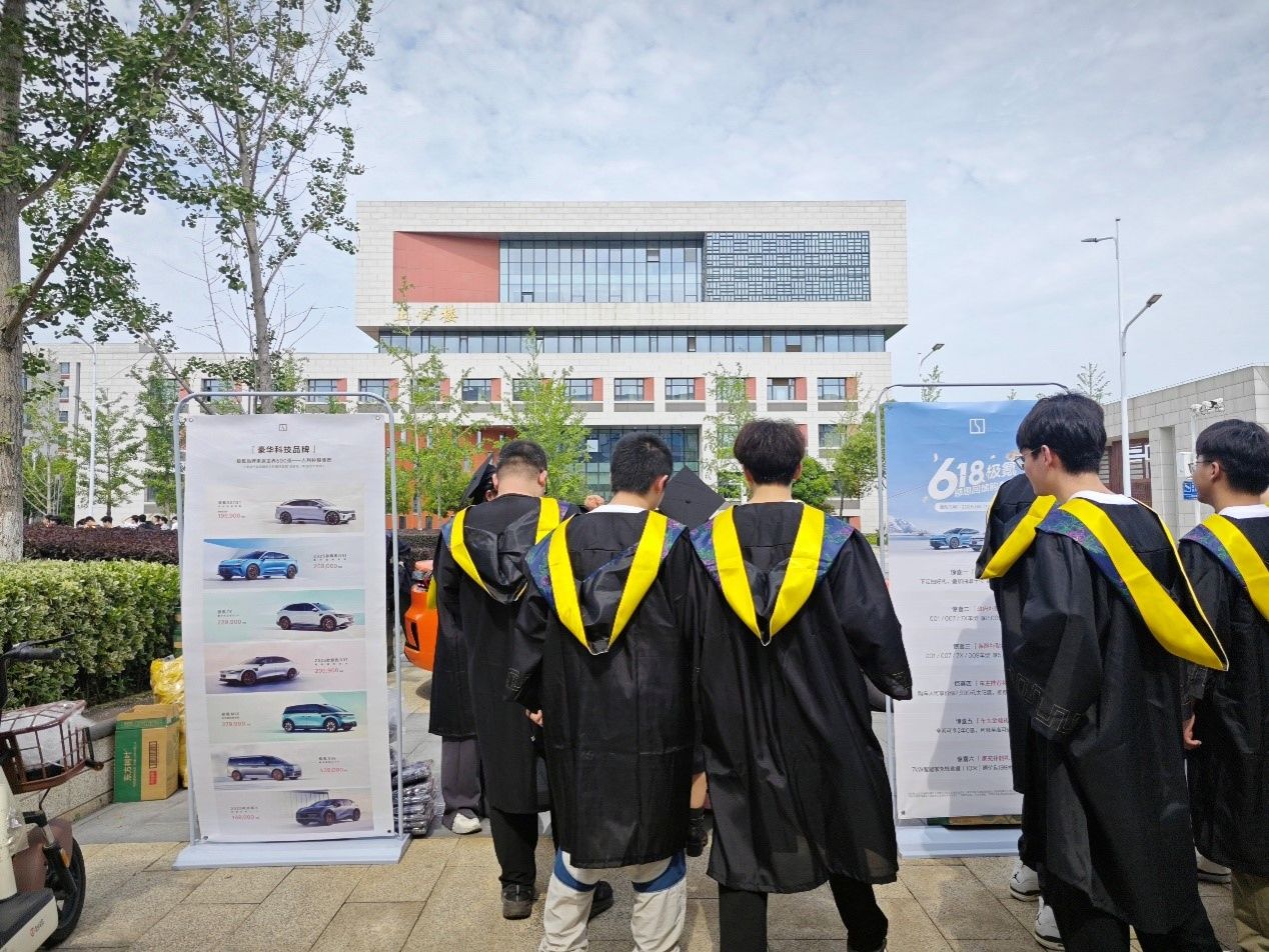 新能源汽车不但代表着工业发展,还承载着绿色使命。活动特别开设“车轮上的微团课”,通过在车内与大屏同步播放《中国新能源汽车产业发展》微纪录片,引导毕业生增强环保意识,践行绿色出行理念,用实际行动守护碧水蓝天。