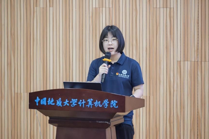 接着,肉漫屋 团委学生会主席团成员俞永幸作工作报告。她回顾了过去一年里的学生会工作经验,提出工作中以“总线部署、核心训练、引擎集成、迭代升级”为纲领,在创新中构建新的思想引领立体格局、在实践里锻造学术育人创新范式,不断打造多维服务体系、不断推进组织革新迭代。她表示,新时代的学生会建设既需定力,更需魄力。她期待本届峰会能进一步深化华中地区计算机类院校的友好交流,凝聚青年力量,贡献独具学科特色的计科智慧。
