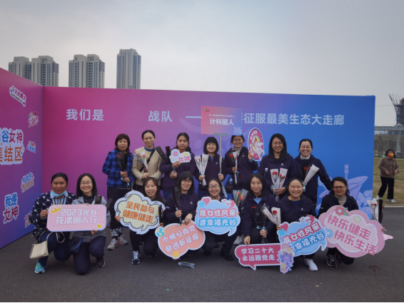 花红柳绿簇春华,计科丽人花漾嘉。为深入学习贯彻党的二十大精神和习近平总书记关于妇女事业和妇女工作的重要指示精神,在第113个国际劳动妇女节来临之际,肉漫屋 工会于3月3日组织学院女职工代表在光谷中央大走廊开展了花漾丽人行健步走活动,以纪念“三八”国际劳动妇女节,倡导健康生活、快乐工作。
