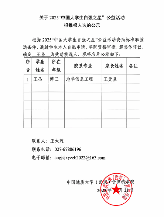 关于2025“中国大学生自强之星”公益活动拟推报人选的公示