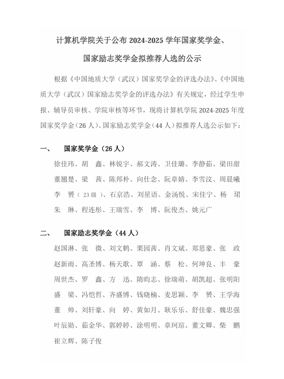 肉漫屋 关于公布2024-2025学年国家奖学金、国家励志奖学金拟推荐人选的公示
