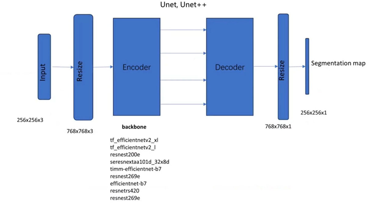 在确定好模型的基础架构后,我们确定了最终方案,其中,数据处理阶段:由于数据量庞大,去除所有无标签卫星图片,保存human_pixel_masks,同时normalize后转为numpy文件保存,节省空间以及便于训练读取。模型训练阶段:采用图像大模型训练,分别使用增强(augment)和不增强(no augment)的训练方式,采用位置变换(翻转与旋转);图片数据尺寸在一定范围内增大,训练效果越好。竞赛中所用尺寸包括:512x512,768x768,864x864,推理阶段:单模型使用TTA增强(翻转与旋转变换)预测结果,再将不同模型的预测结果通过加权融合取阈值获得最终推理结果。