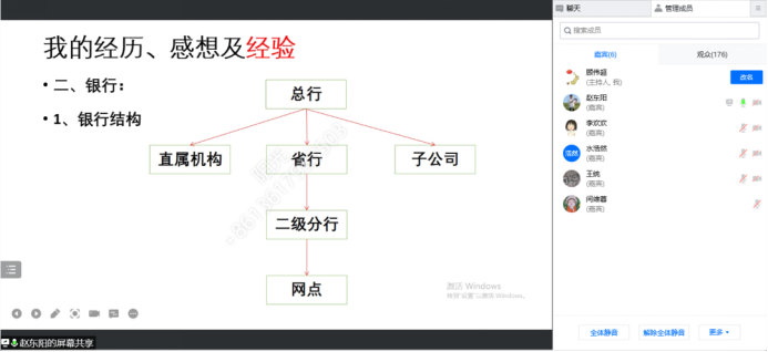 第一位分享人赵东阳,从当前互联网行业的就业形势切入,指出不同职业规划下的就业选择。结合自身经验向同学们分享求职就业过程中的经历、体验与感想,特别是在银行求职这一领域,详细分析了相关行业的各类求职渠道和职场信息,并针对求职、面试细节给出宝贵经验。