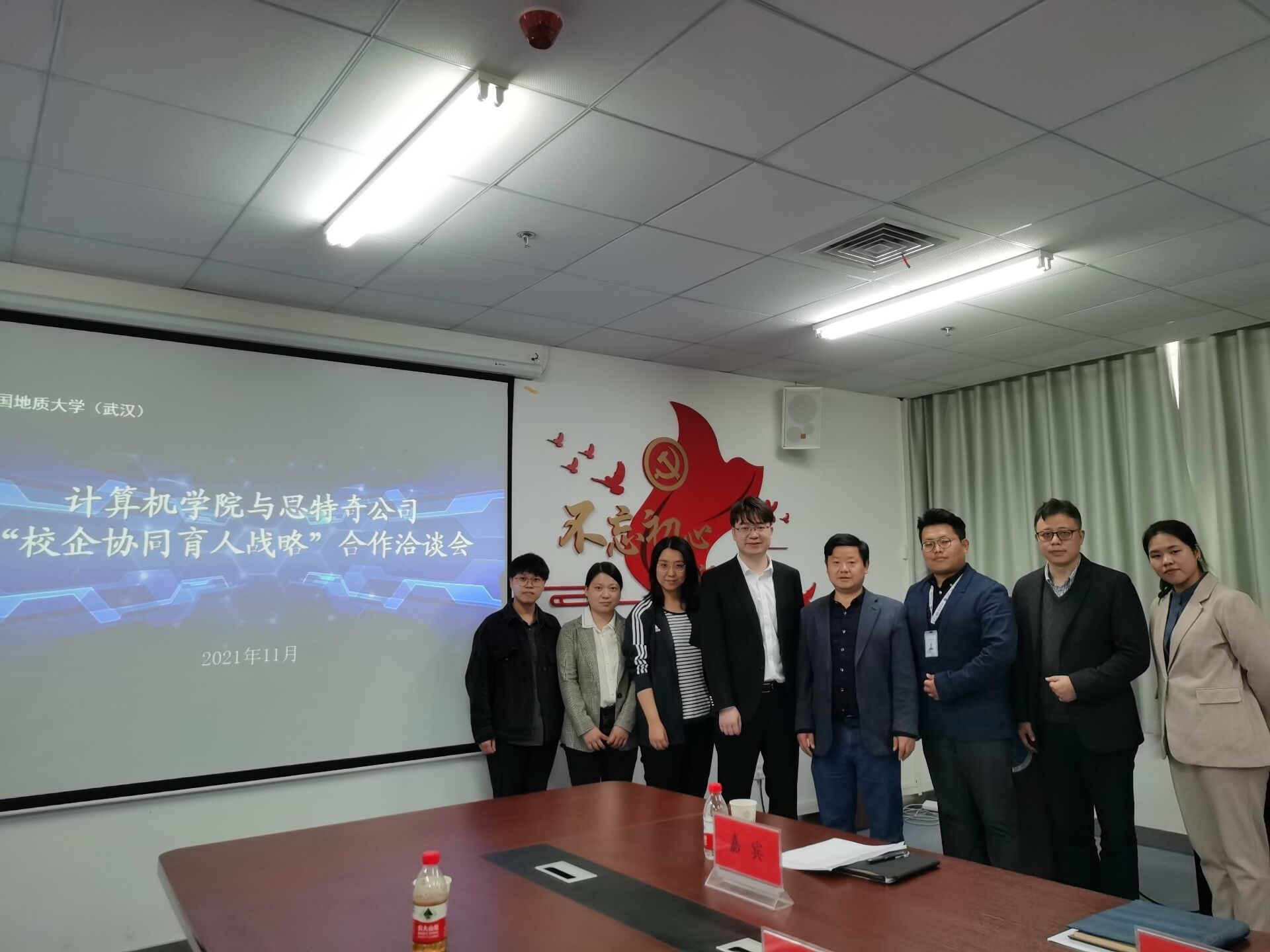 最后,经学院与思特奇公司的协商,双方建立了合作关系,针对在校本科生和研究生进行联合人才培养,包括学生活动、学生竞赛、前沿技术讲座、企业实习等多种合作形式,探讨拟定了“校企协同育人战略”合作框架协议。