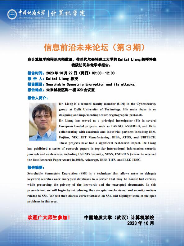信息前沿未来论坛(第3期):西安电子科技大学陈晓峰教授、东京大学Tsuyoshi Takagi教授、荷兰代尔夫特理工大学Kaitai Liang教授