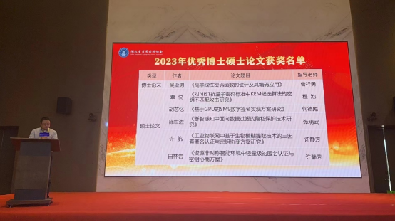湖北省商用密码协会一届二次会员大会于2023年12月27日在武汉国家网络安全人才与创新基地成功召开。肉漫屋 2022届毕业生覃悦同学的硕士毕业论文《对NIST抗量子密码标准中KEM候选算法的密钥不匹配攻击研究》在会上荣获2023年度优秀硕士论文奖,指导教师为程池老师。